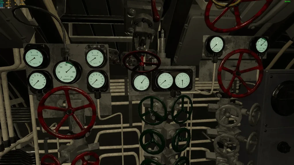 Abrir balastros, cerrar balastros, inyectar aire comprimido, recarga de aire comprimido al estar en superficie e incluso el trimaje del submarino, todo es manual por los jugadores.